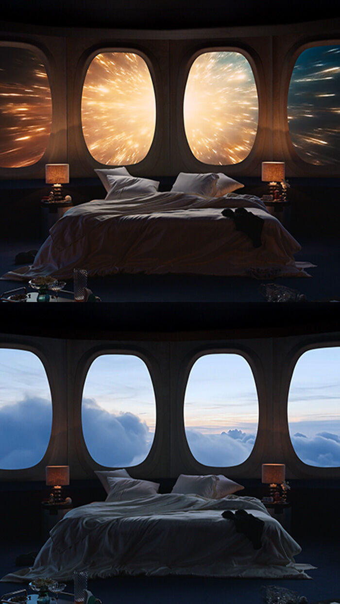 Concebida como una habitación atemporal, Suite 2046 ofrecía a los visitantes una experiencia inmersiva, invitándoles a ralentizar el ritmo, observar y sentir. El espacio se construía en torno a conceptos esenciales, como la intimidad, la memoria y la emoción, en un enfoque en el que cada elemento participaba plenamente en la narración. Los materiales, la luz y los volúmenes dialogaban para crear una atmósfera suspendida, propicia para la contemplación.