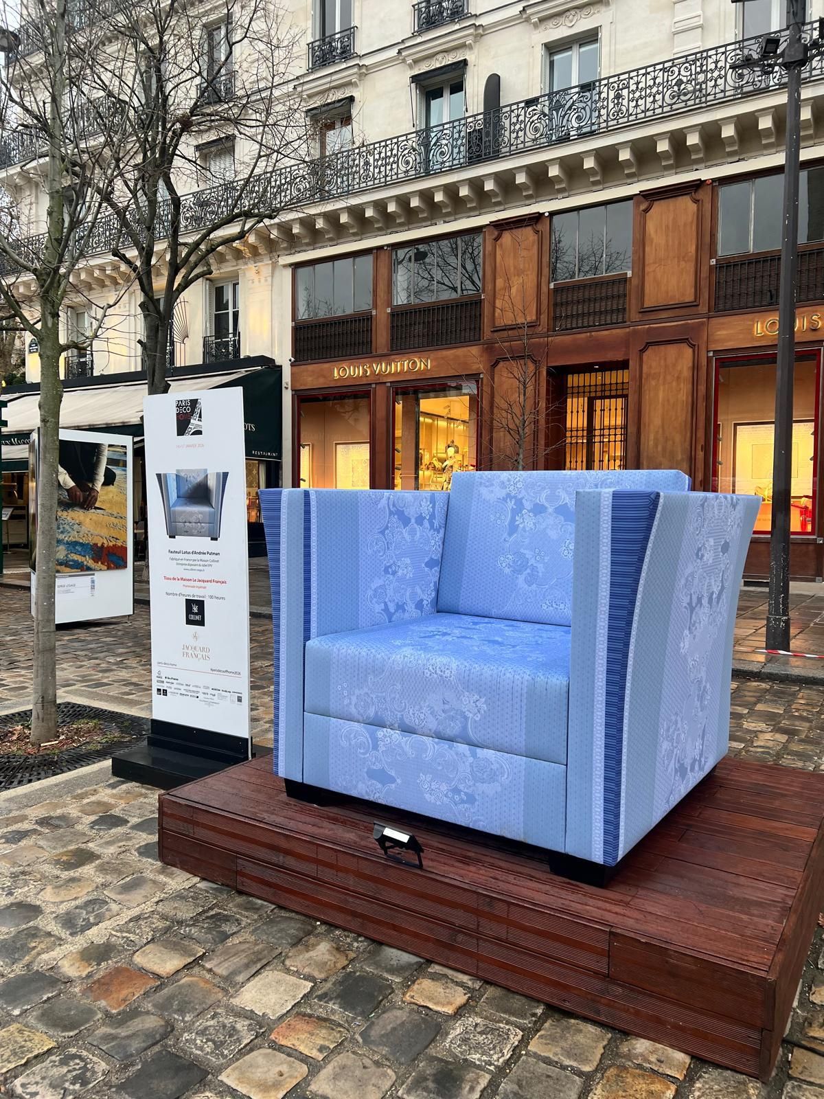 Con motivo de Paris Déco Home y Paris Déco Off, del 14 al 17 de enero de 2026, Le Jacquard Français ocupó la Place Saint-Germain-des-Prés con dos instalaciones artísticas que celebran el diálogo entre la creación contemporánea y el saber hacer textil.